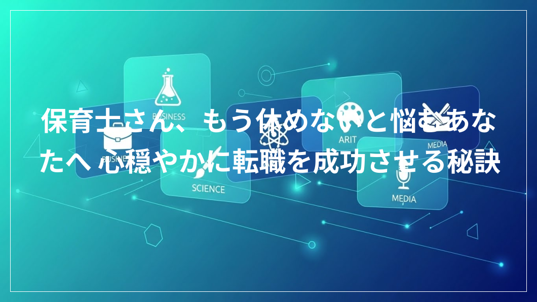 保育士として働く皆さん、毎日お疲れ様です。もしかしたら「もう休めない」「このままでは心が壊れてしまう」そんな風に感じていませんか? 人と向き合う尊い仕事だからこそ、ご自身の心身の健康が何よりも大切です。この記事では、そんなあなたが心穏やかに、そして自分にぴったりの転職先を見つけるための具体的な秘訣を、親身になってお伝えしていきます。未来の自分を想像して、少しでも希望を持っていただけたら嬉しいですね。