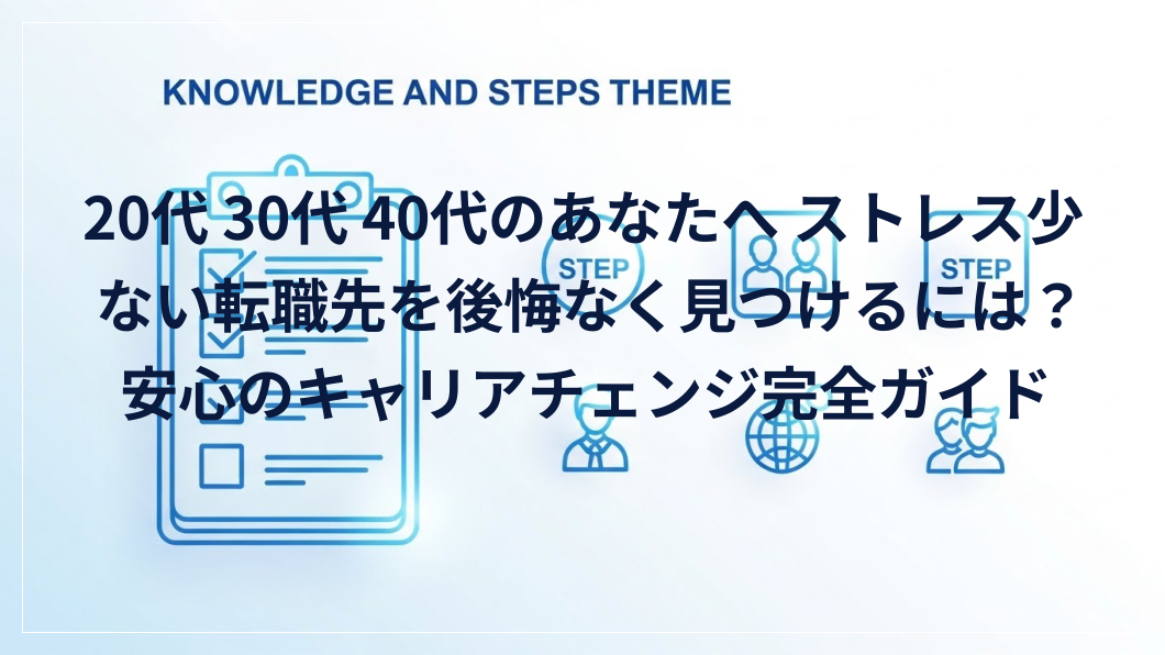今の仕事、正直なところ「もっとストレスが少ない転職先はないのかな」って、ふと考える瞬間、皆さんにもありますよね? 特に20代、30代、40代という大切なキャリアの時期だからこそ、後悔のない選択をしたいものです。この記事では、そんなあなたの漠然とした不安に寄り添いながら、本当に自分に合った働き方を見つけるための具体的な道筋を、一つ一つ丁寧にご案内していきますよ。