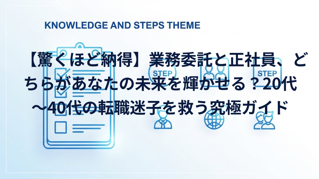 今の仕事に不満を感じ、「本当にこのままでいいのかな?」と漠然とした不安を抱えているあなたへ。20代から40代、まさにキャリアの転換期に差し掛かる時期ですよね。業務委託と正社員、この二つの働き方の違いを深く理解することは、理想の未来を掴むための第一歩です。この記事では、あなたの心に寄り添いながら、それぞれの働き方の本質を解き明かし、自分らしい選択ができるよう、全力でサポートします。さあ、一緒に新しい可能性の扉を開いていきましょう。