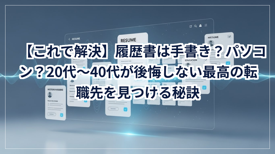 今の仕事、本当にこのままで良いのかな…?そんな漠然とした不安を抱えながら、転職を検討しているあなたへ。まず最初にぶつかる壁の一つが「履歴書は手書きとパソコン、どっちがいいの?」という疑問かもしれませんね。でも、安心してください。この記事を読めば、そのモヤモヤはきっと晴れて、自分に合った最高の転職先を見つけるための道筋が、鮮やかに見えてくるはずです。あなたの転職活動が、後悔のない、そして希望に満ちたものになるよう、心から応援させてください。