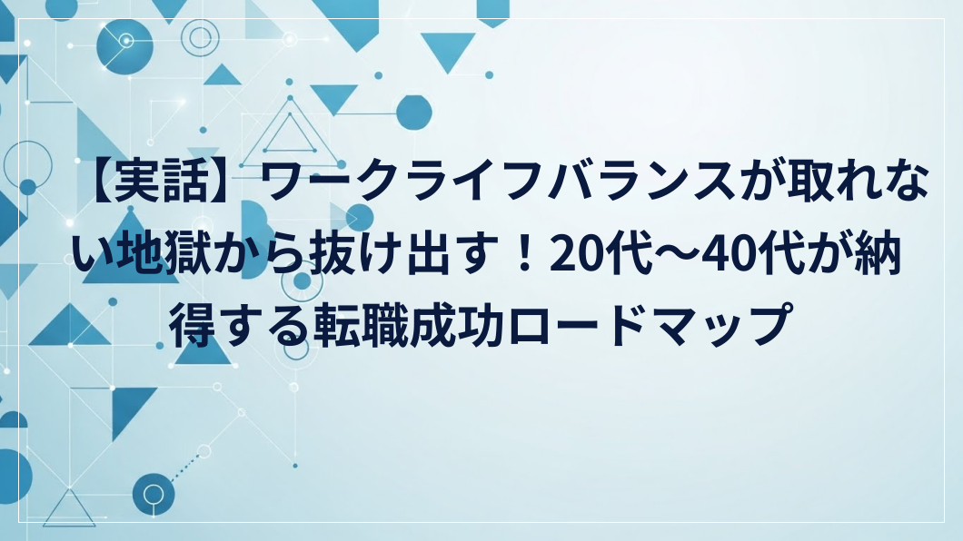 皆さん、毎日お疲れ様です。もしかして今、「ワークライフバランスが全く取れない…このまま今の仕事を続けるのはもう限界かもしれない」と、深い悩みを抱えていらっしゃるのではないでしょうか。