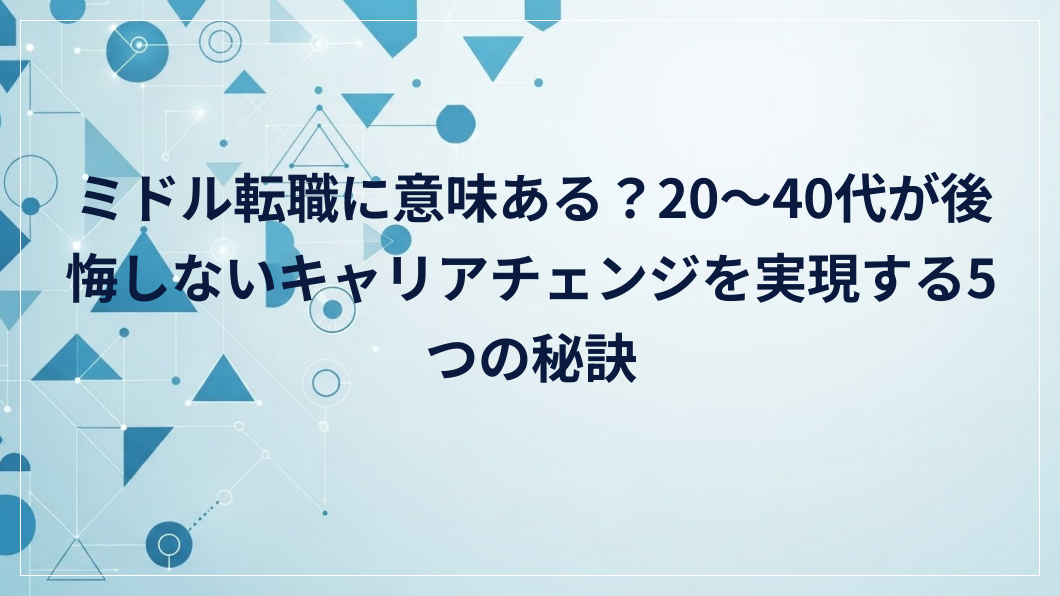 ミドル転職に意味ある?20〜40代が後悔しないキャリアチェンジを実現する5つの秘訣