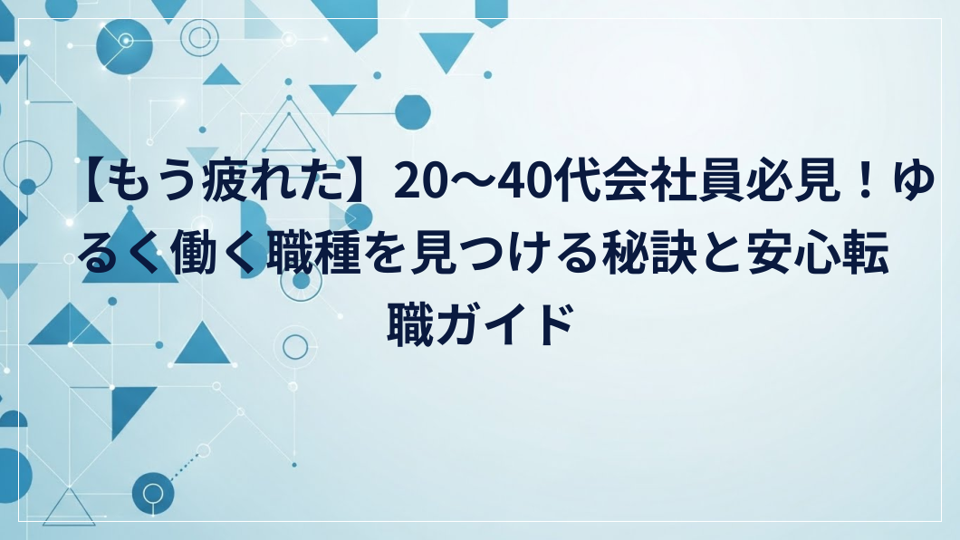 【もう疲れた】20~40代会社員必見!ゆるく働く職種を見つける秘訣と安心転職ガイド