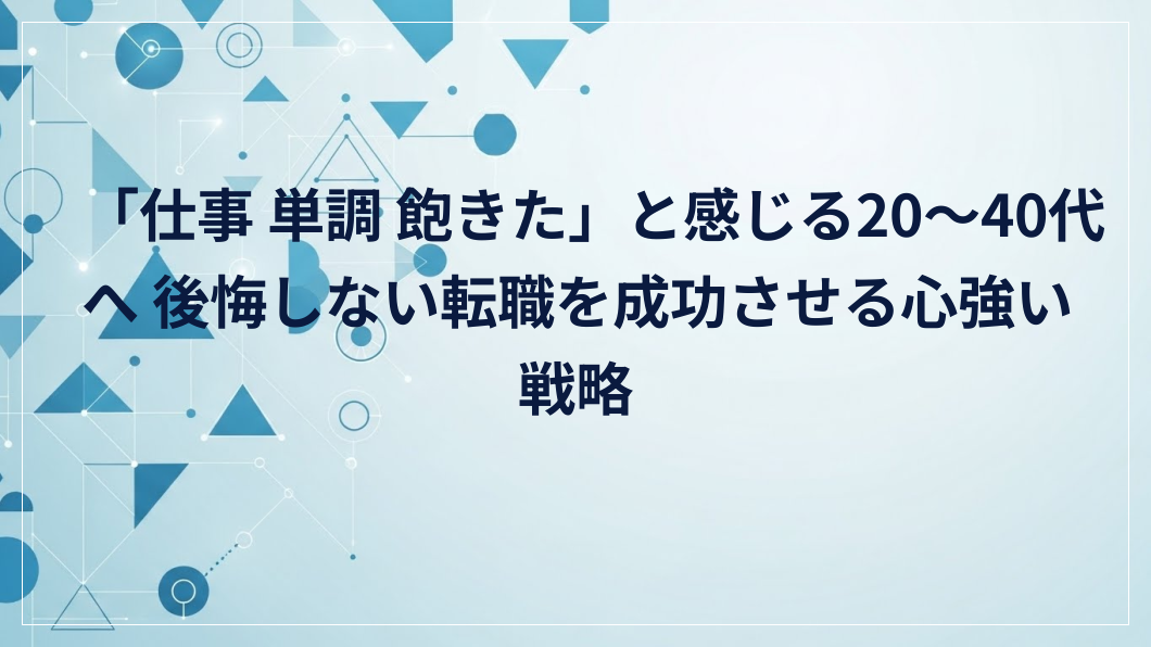 毎日同じことの繰り返しで「仕事 単調 飽きた」と感じている20代から40代の皆さん、その漠然とした不満、私もよくわかります。今の環境から抜け出したい、でも何から始めればいいのか途方に暮れている方も少なくないでしょう。この状況を放置していると、心の健康にも良くない影響が出てしまうことも。この記事を読めば、あなたに本当に合う転職先を見つけ、後悔しないキャリアチェンジを実現するための具体的な道筋が見えてくるはずです。さあ、一緒に新しい一歩を踏み出す準備を始めましょう。