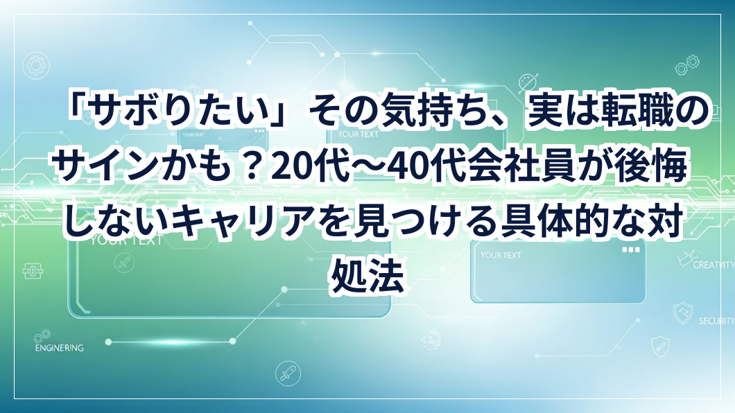 「サボりたい」その気持ち、実は転職のサインかも?20代〜40代会社員が後悔しないキャリアを見つける具体的な対処法