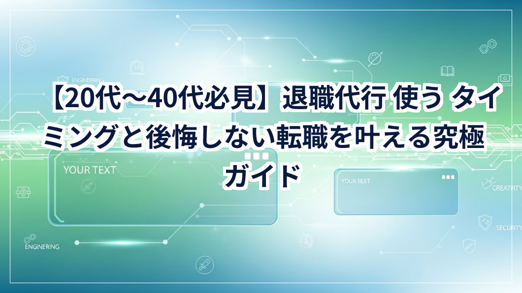 【20代〜40代必見】退職代行 使う タイミングと後悔しない転職を叶える究極ガイド