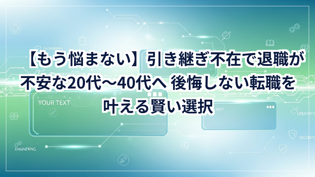 【もう悩まない】引き継ぎ不在で退職が不安な20代〜40代へ 後悔しない転職を叶える賢い選択