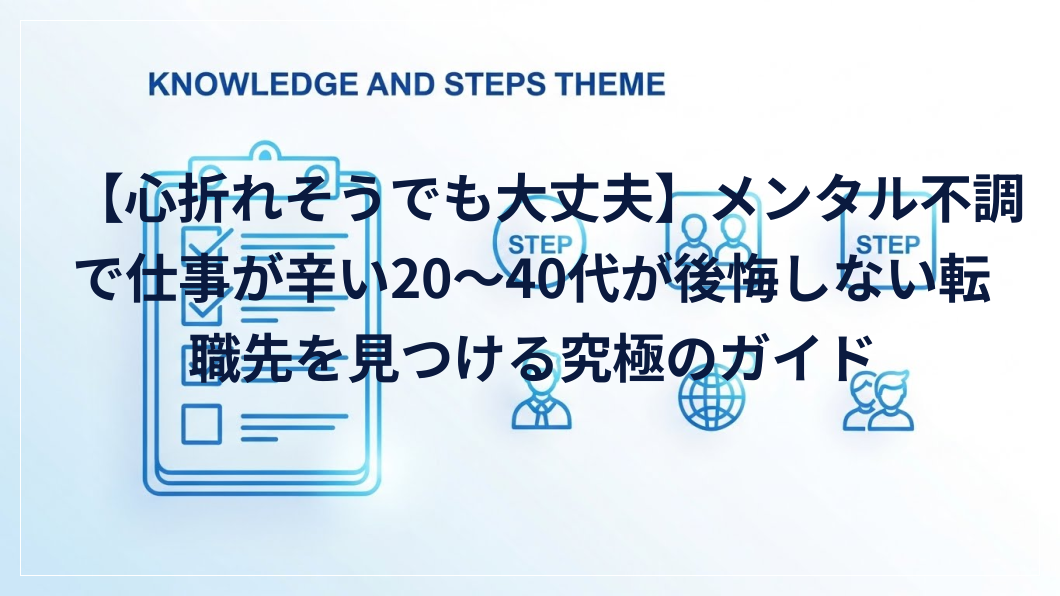 毎日、朝が来るのが憂鬱で、会社に向かう足が重い。そんなふうに感じていませんか?心が疲弊しきって、もう限界だと感じているあなた。メンタル不調を抱えながら仕事を続けるべきか、それともこの苦しい状況から抜け出すために転職すべきか、出口の見えないトンネルの中にいるような気分かもしれませんね。この記事では、そんなあなたが自分に合った転職先を見つけ、後悔のない未来を掴むための具体的な方法を、私たちプロの視点と、ほんの少しの個人的な経験を交えながら、心を込めてお伝えしていきます。読み終える頃には、きっとあなたの心に、新しい希望の光が灯るはずです。